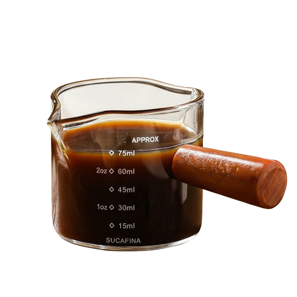 כוס למדידת קפה מזכוכית עם ידית עץ