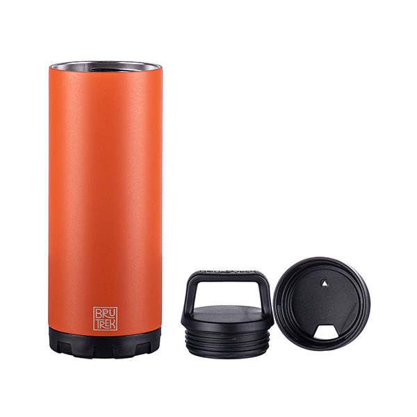 בקבוקי BruTrekker™ עשויים מפלדת אל-חלד 18/8 איכותית, עם דופן כפולה ובידוד ואקום למניעת עיבוי ושימור טמפרטורה. מערכת המכסה הכפול כוללת מכסה ראשי עם ידית אחיזה נוחה הניתנת להברגה ישירות לבקבוק או למכסה משני עם פיה נוחה ללגימה או מזיגה.